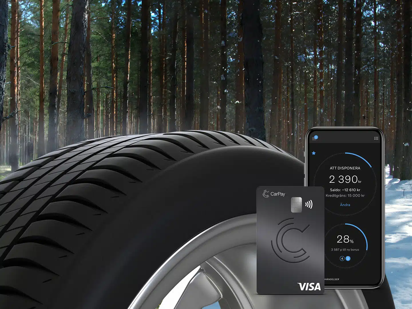 Delbetalning i upp till 12 månader utan ränta och avgifter är bara en av fördelarna med att betala allt kring däcken med CarPay. En annan är att alla köp du gör med kortet eller appen ger dig bonus tillbaka. Bonus du kan använda för att ladda, tanka, tvätta eller betala i vår verkstad med. Du kan dessutom använda appen för att betala med din intjänade bonus hos oss, till exempel när du ska byta däck.