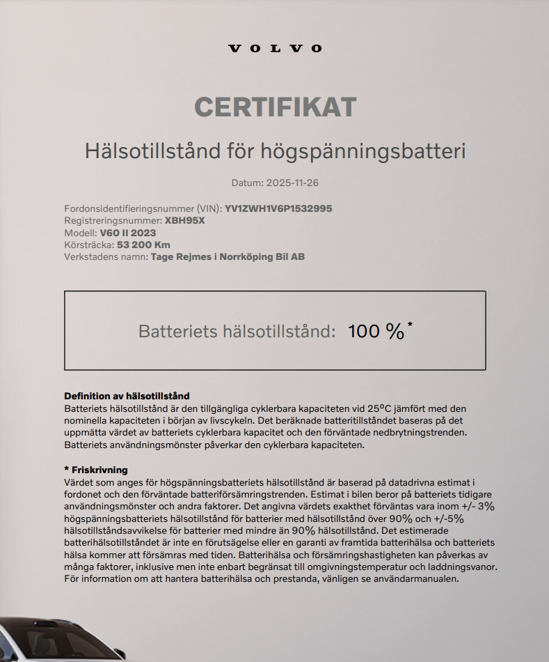 Intresseanmälan för V60 Recharge T6 Core Edition med registreringsnummer: XBH95X.