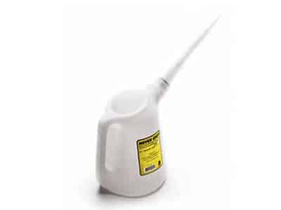 Perfekt för att minska spillet. Klarar Olja och andra vätskor. Avtagbar pip. Graderad med mätfönster Av HDPE plast. Rymd: 5 liter. Storlek: 280×200 Vikt: 250g